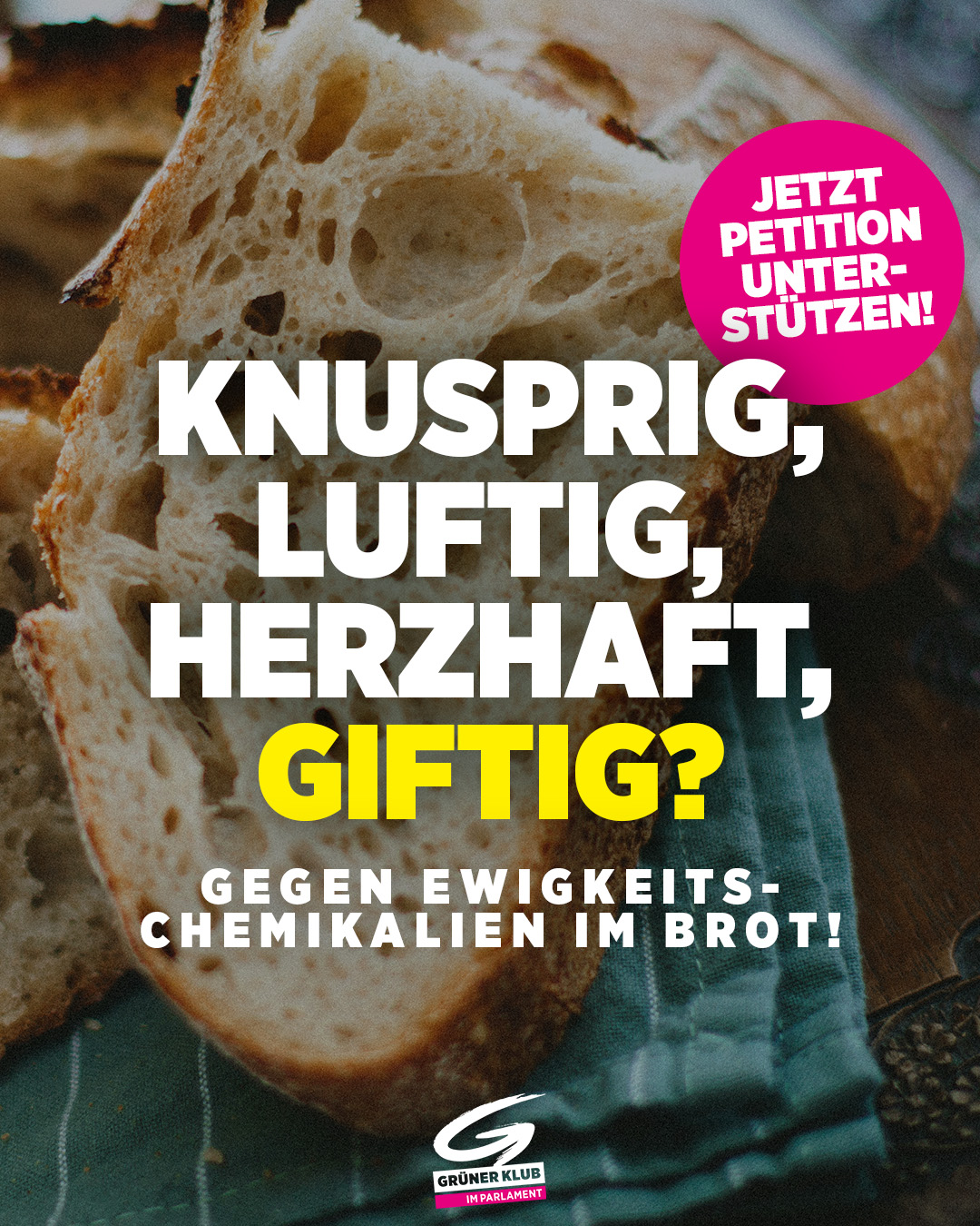 Wir sagen: Knackig, g’schmackig, nahrhaft – aber ganz bestimmt ohne Gift! Setz dich mit uns gegen gefährliche Ewigkeits-Chemikalien wie PFAS ein.